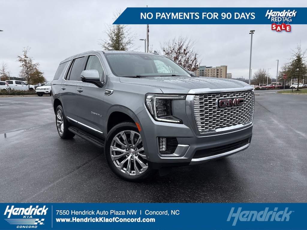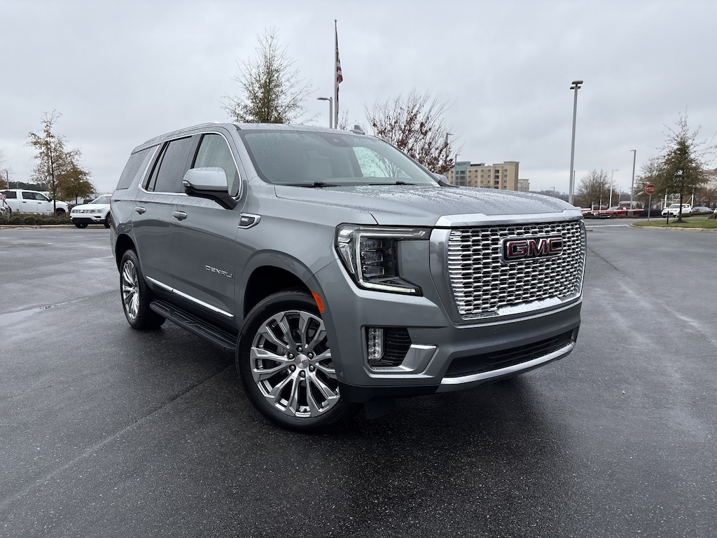 ADVANCED TECHNOLOGY PACKAGE includes (UKL) Super Cruise, (UKZ) Enhanced Automatic Parking Assist, (UVZ) Reverse Automatic Braking, (DRZ) Rear Camera Mirror, (CWA) Rear Camera Mirror Washer and (NWM) Advanced Security Package content, WHEELS, 22 X 9 (55.9 CM X 22.9 CM) BRIGHT MACHINED ALUMINUM WITH PREMIUM PAINT Includes (SFE) wheel locks, LPO.), REAR SEAT MEDIA SYSTEM includes dual rear seat-mounted 12.6 diagonal color-touch LCD HD screens, two Bluetooth® headphones with 2 HDMI ports on the back of the center console, SUNROOF, POWER PANORAMIC, DUAL-PANE tilt-sliding with express-open and close and power sunshade, AUDIO SYSTEM, 10.2 DIAGONAL PREMIUM GMC INFOTAINMENT SYSTEM WITH GOOGLE BUILT-IN includes color touch-screen, multi-touch display, AM/FM stereo, Bluetooth® streaming audio for music and most phones; featuring wireless Android Auto® and Apple CarPlay® capability for compatible phones, advanced voice recognition, in-vehicle apps, personalized profiles for infotainment and vehicle settings (STD), ENGINE, 6.2L ECOTEC3 V8 with Dynamic Fuel Management, Direct Injection and Variable Valve Timing, includes aluminum block construction (420 hp [313 kW] @ 5600 rpm, 460 lb-ft of torque [624 Nm] @ 4100 rpm) (STD), TRANSMISSION, 10-SPEED AUTOMATIC electronically controlled with overdrive, includes Traction Select System including tow/haul (STD), ADVANCED SECURITY PACKAGE, BODY SECURITY CONTENT includes (UTR) self-powered horn, (UTV) interior movement sensors, (UTU) vehicle inclination sensors, (UTW) glass break sensors in rear quarter glass and liftgate window and door and liftgate lock shields. GMC Denali with Sterling Metallic exterior and Teak/Light Shale interior features a 8 Cylinder Engine with 420 HP at 5600 RPM*. Non-Smoker vehicle
