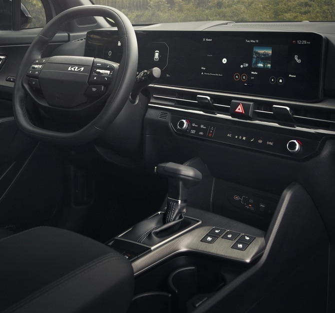 The 2026 Kia Sportage has many premium materials and comfortable seating. The front bucket seats provide ample support and can be upgraded with heating and ventilation for year-round comfort. Dual-zone climate control and a panoramic sunroof are available to craft a cabin you will love for every drive. A new steering wheel enters the fray for the 2026 Sportage.