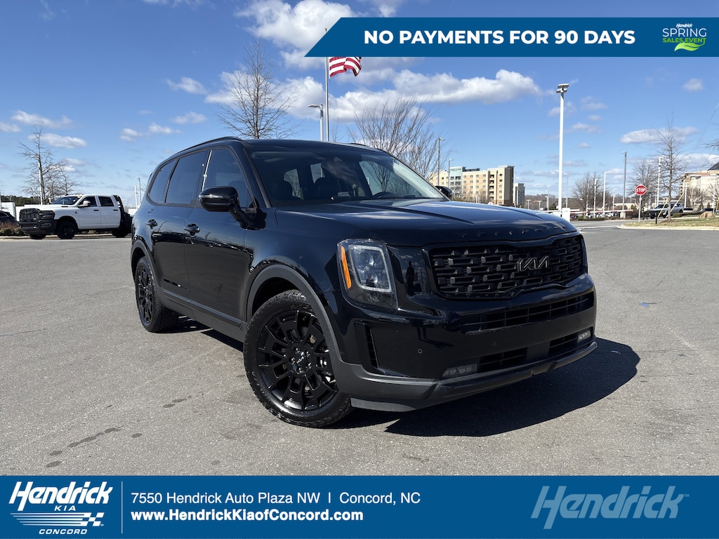 SX PRESTIGE PACKAGE Heated & Ventilated 2nd Row Seats, Premium Cloth Headliner & Pillar Trim, sun visors, 110V Inverter, Head Up Display, Rain-Sensing Front Windshield Wipers, NIGHTFALL EDITION PACKAGE Black Finish Radiator Grille, new Kia emblem, Front & Rear Gloss Black Finish Bumper Skid Plates, front bumper air duct garnish, Gloss Black Finish Front & Rear Door Garnish, Wheels: 20 x 7.5 Exclusive Black Alloy, dark chrome lug nuts and black wheel caps, Exclusive Black Fog Light Bezel, Gloss Black Finish Exterior Emblems, Exclusive Black Headlight Bezels, Gloss Black Finish Roof Rails, Body Color Exterior Door Handles, CARPETED FLOOR MATS. Kia SX with BLACK exterior and Black interior features a V6 Cylinder Engine with 291 HP at 6000 RPM*. Non-Smoker vehicle