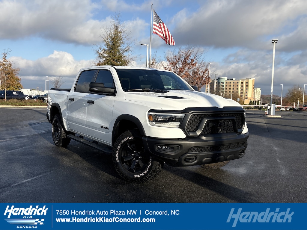 ENGINE: 5.7L V8 HEMI MDS VVT ETORQUE Active Noise Control System, Heavy Duty Engine Cooling, Passive Tuned Mass Damper, Dual Exhaust w/Black Tips, GVWR: 7,100 lbs, HEMI Badge, 23 Gallon Fuel Tank, REBEL LEVEL 1 EQUIPMENT GROUP Rear Window Defroster, Power Adjustable Pedals, Rear Power Sliding Window, Rear Dome w/On/Off Switch Lamp, Power 8-Way Driver Seat, Auto Dim Exterior Driver Mirror, Heated Front Seats, Foam Bottle Insert (Door Trim Panel), Black Premium Power Mirrors, 9 Amplified Speakers w/Subwoofer, Radio: Uconnect 5 Nav w/12.0 Display, Exterior Mirrors w/Supplemental Signals, Exterior Mirrors Courtesy Lamps, Universal Garage Door Opener, Power-Folding Mirrors, 2nd Row In Floor Storage Bins, Sun Visors w/Illuminated Vanity Mirrors, Power 2-Way Driver Lumbar Adjust, NIGHT EDITION Black Front Bumper w/Black Plate, Wheels: 18 x 8.0 Gloss Black, Grille Surround 2 Black Texture 3 Black, RAM Grille Badge - Black, COMFORT/CONVENIENCE GROUP Remote Tailgate Release, Exterior Mirrors w/Memory, Heated Second Row Seats, Wireless Charging Pad, Power 8-Way Driver & Passenger Seats, CLASS IV RECEIVER HITCH, REMOTE START SYSTEM, TRANSMISSION: 8-SPEED AUTOMATIC (8HP75). Ram Rebel with Bright White Clearcoat exterior and Black interior features a 8 Cylinder Engine with 395 HP at 5600 RPM*.